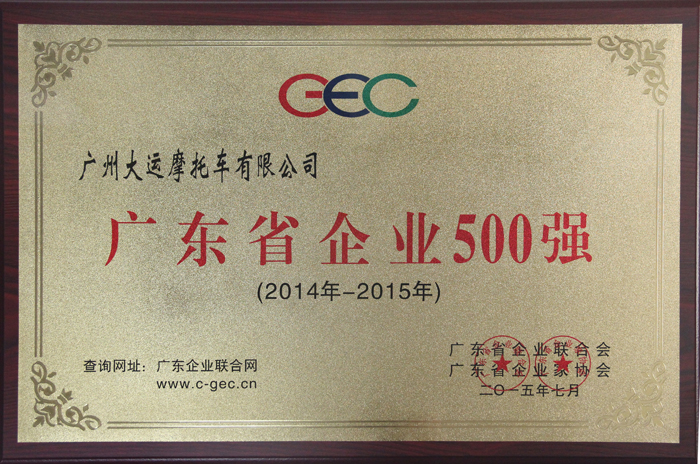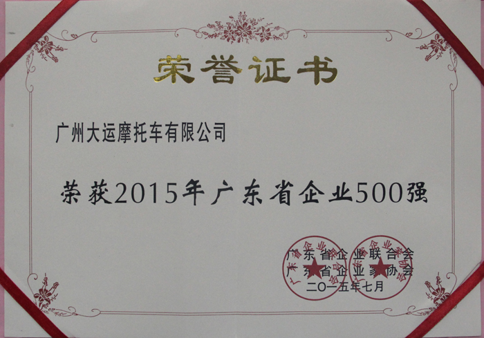 2015年7月我司荣获“2015年广东省企业500强”-凯发k8pa